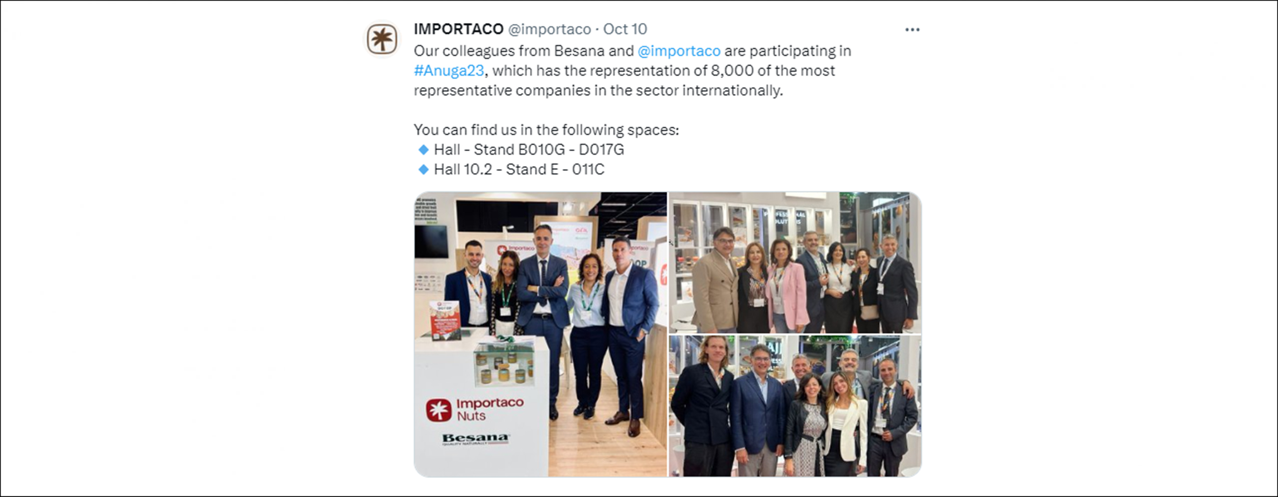 Incluir en primer lugar el nombre de la empresa (Importaco) seguido de la unidad o departamento del que formas parte. En la segunda línea identificativa, incluir el horario de la oficina y añadir el logo actual de la marca Importaco.