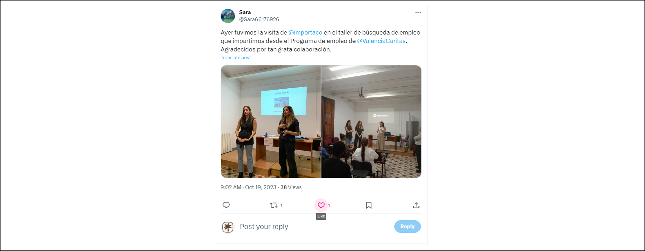 Esta fórmula nos permite trascender a nuestra comunidad e integrarnos en otras. Puedes nombrar otras organizaciones o profesionales escribiendo @, seguida del nombre de la entidad o persona interesada.